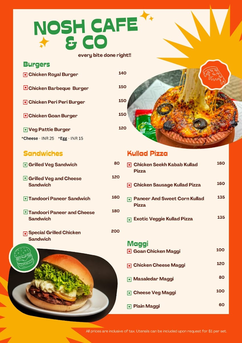 Nosh Cafe and co Menu